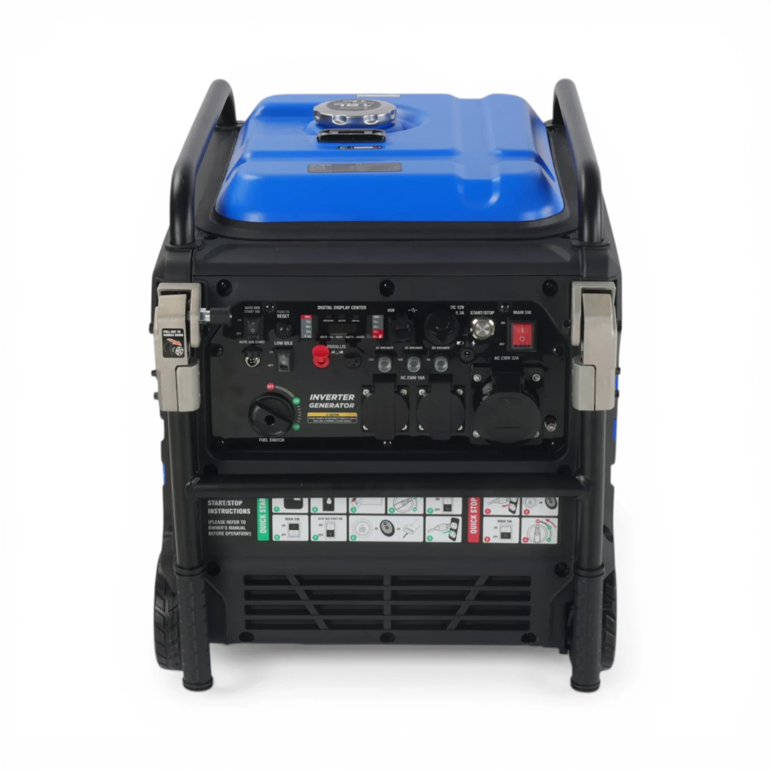 Avec une puissance de fonctionnement de 7200W et un démarrage électrique couplé à un lanceur manuel, ce modèle offre confort d’utilisation et sécurité. Son niveau sonore maîtrisé de 65.5 dB en mode éco en fait un excellent choix pour une utilisation domestique, chantier ou événementielle.